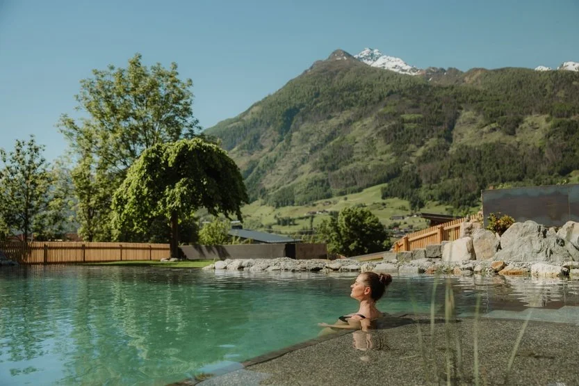 20-Meter-Naturpool im neuen SPA-Garten, Deferegger Heilwasser Solebad mit 35 °C, Außenpool mit 35 °C, Indoor-Pool mit Liegebereich